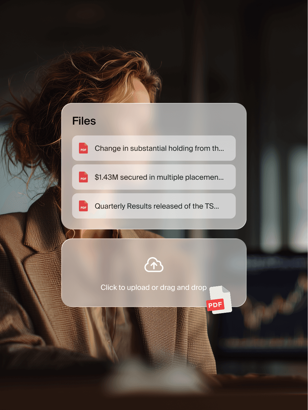 Upload internal research, broker notes, or any document.
